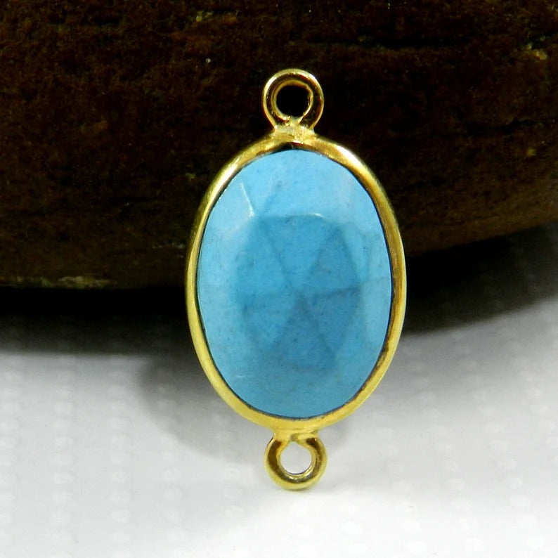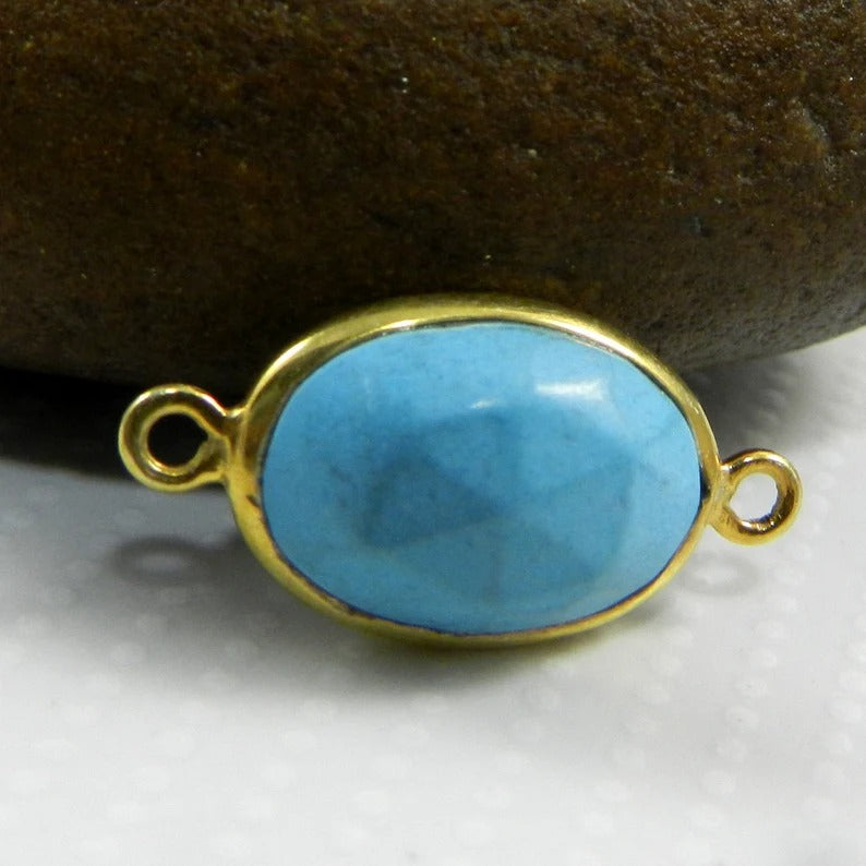 Synthetic blue turquoise 22 x 11 mm oval rose cut 925 sterling silver double loop gold plated bezel set connector for making jewelry