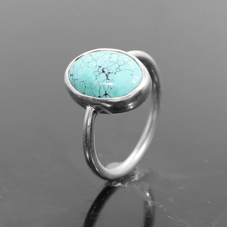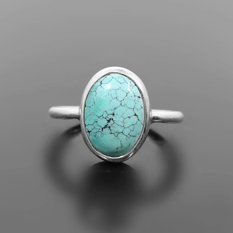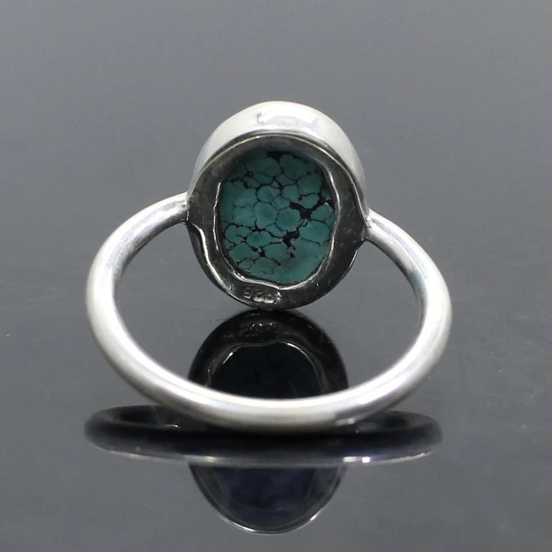 Tibetan Turquoise Gemstone 92.5 Sterling Silver Ring