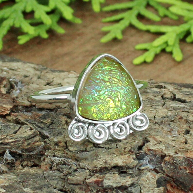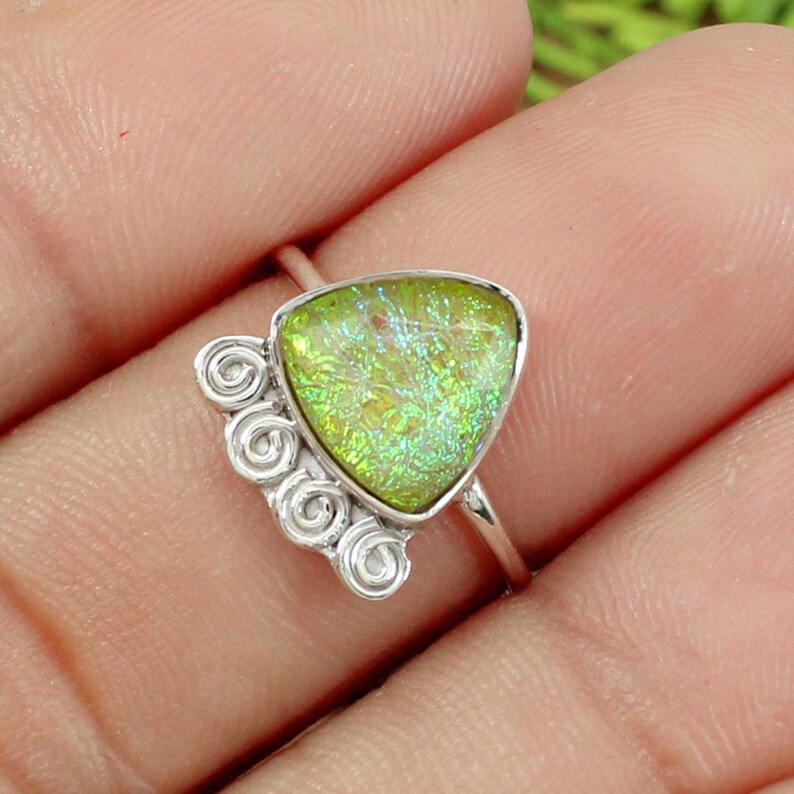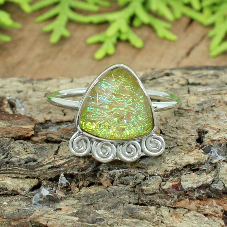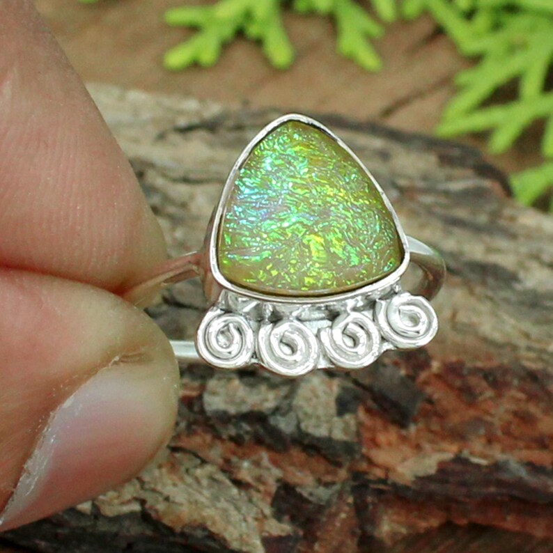 Trillion Synthetic Ethiopian Opal Gemstone 92.5 Silver Ring