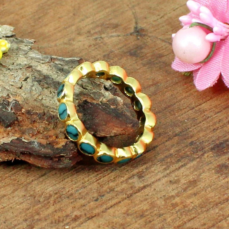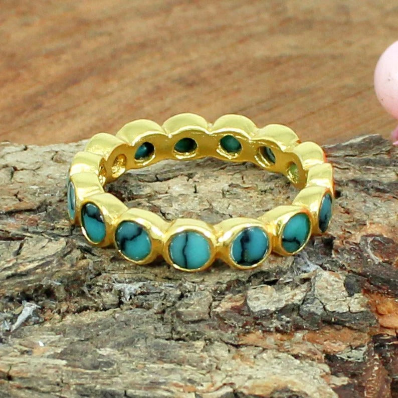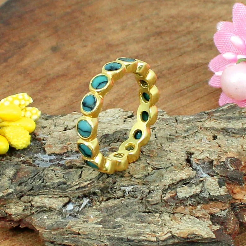 Turquoise Gemstone Gold Plated Silver Eternity Ring Band