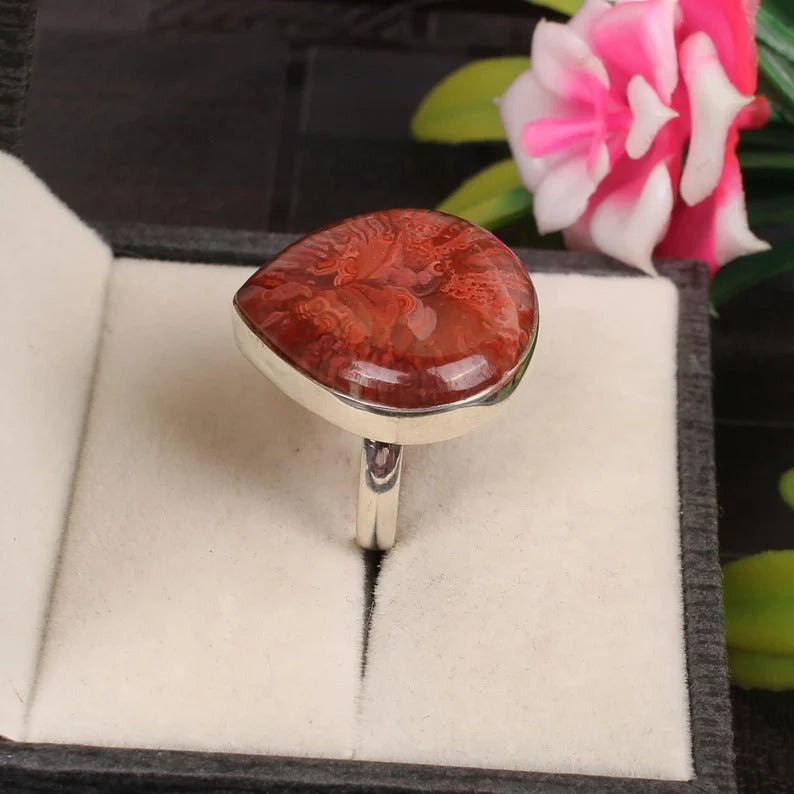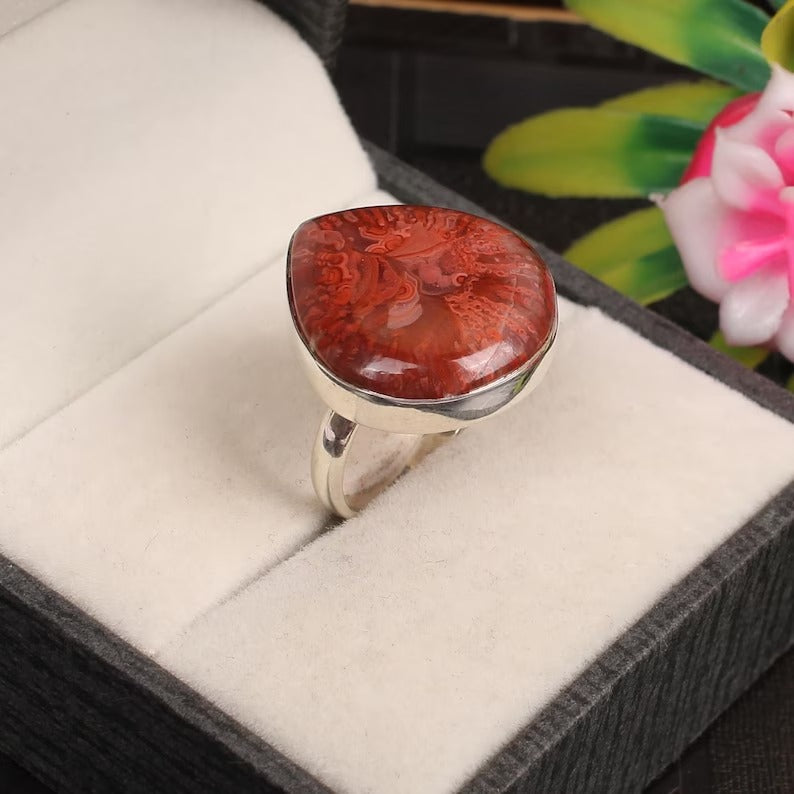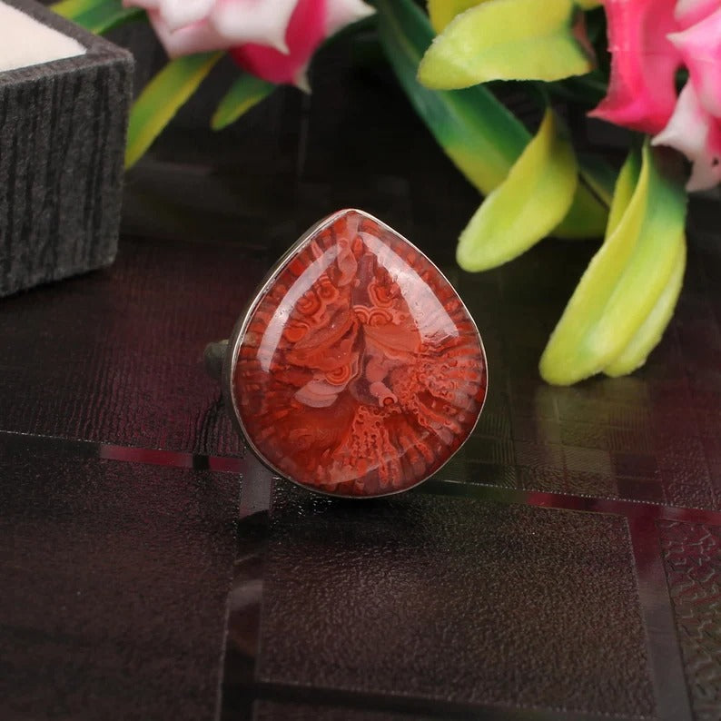 Utah Coral Gemstone 92.5 Sterling Silver Ring