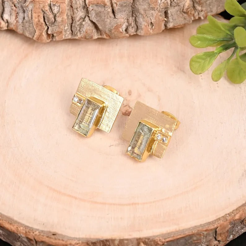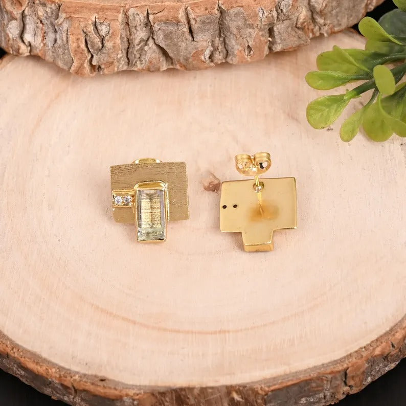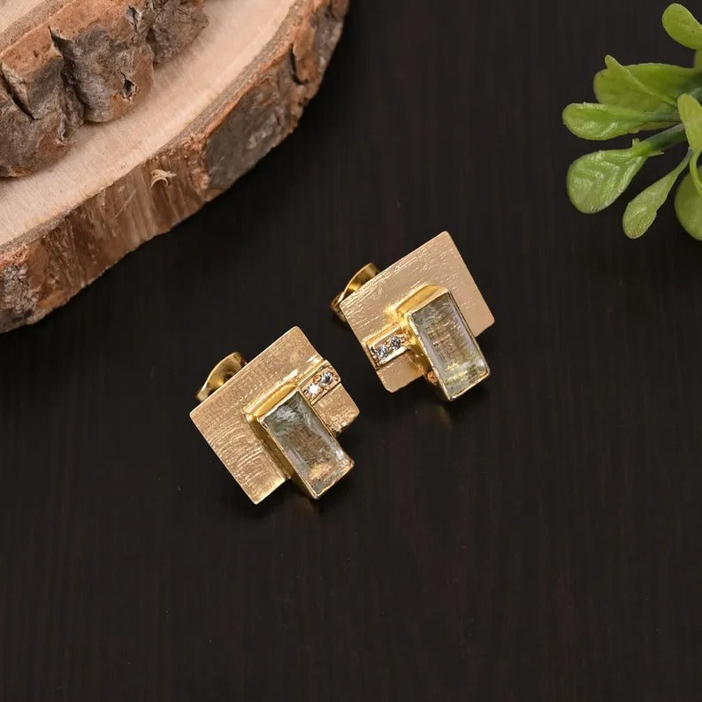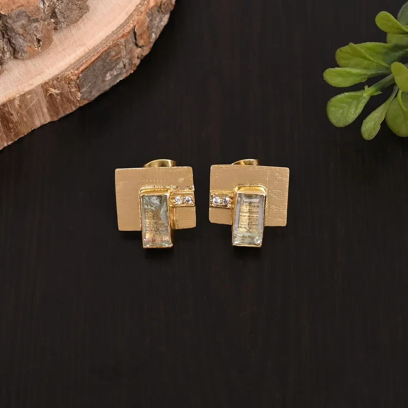 Valuable Aqua Crackle Glass Dainty Brass Studs Earrings