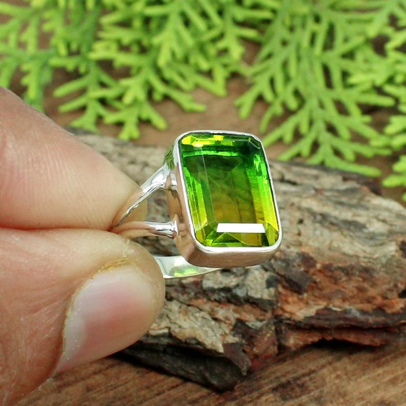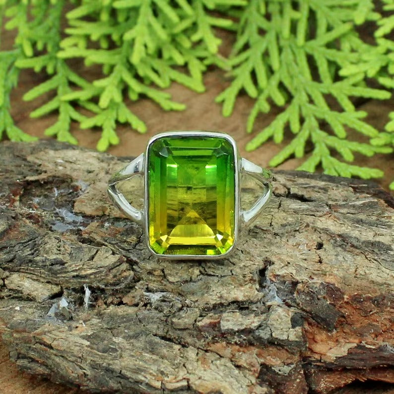 Yellow & Green Bio Color Doublet Gemstone 925 Sterling Silver Ring